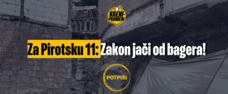 Za Pirotsku 11: Zakon jači od bagera!U Pirotskoj 11 na Voždovcu, nečiji domovi bukvalno vise nad provalijom, dok sistem mesec dana žmuri na sopstvena rešenja. Pre više od mesec dana, građevinska inspekcija je zvanično potvrdila da je investitor „Macro Plan Investments“ d.o.o. nepravilnim iskopom potkopao temelje susednih zgrada. Izrečen je jasan nalog: Sanacija odmah, rok 3 dana. Danas, 30 dana kasnije, gradilište je i dalje rupa koja se pod uticajem vremena osipa i „jede“ zemlju ispod komšijskih pragova. Situacija je alarmantna. Ljudi su raseljeni. Zbog neposredne opasnosti, naše komšije su morale da napuste svoje domove. Tragično je da ljudi u poznim godinama završe u domovima za stara lica ili kod rodbine samo zato što država ne sprovodi zakon nad jednim investitorom. Bageri su na zatvorenom gradilištu - iako je gradilište zvanično zatvoreno trakom i znakom, mehanizacija se vratila. Ako institucije ne reaguju na direktno kršenje službenih rešenja, to je poruka da je bezakonje dozvoljeno. Tragedija ne sme biti povod za reakciju, a prva jača kiša može dovesti do katastrofe! Zakon je predvideo mehanizam da država popravi štetu o trošku investitora upravo u ovakvim situacijama kada su životi ugroženi. Ne tražimo ništa osim da institucije koje plaćamo počnu da rade svoj posao. Rešenje bez izvršenja je samo običan papir, a nama trebaju sigurni temelji. Potpiši peticiju! Naterajmo Grad Beograd da sanira Pirotsku 11 pre nego što bude prekasno!7 od 100 PotpisaAutor Kreni- Promeni