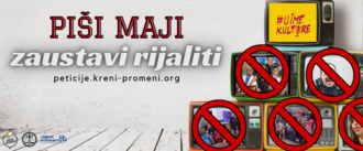 PIŠI MAJI - ZAUSTAVI RIJALITIVeć preko 432 dana predlog zakona koji smo podneli Narodnoj skupštini stoji blokiran čime se krši Ustav. Do sada smo skupili: 42.852 potpisa za 7 dana u sklopu Narodne inicijative; 65.136 online potpisa za ukidanje rijalitija u toku vanrednog stanja. Nedavno u septembru je REM doneo odluku i obavezao se da će Pravilnikom zabraniti rijaliti preko dana (od 06 do 23h). Vrlo brzo je prekršio sopstvenu odluku i odustao od Pravilnika. Institucije koje plaćamo našim novcem da štite zakon istovremeno ga krše. Oni očekuju da se niko više neće boriti i da ćemo odustati. Hajdemo da im svi pokažemo da ne odustajemo od naših prava i ove zemlje. Naš predlog zakona stoji blokiran u Ministarstvu kulture. Blokirajmo mejl Maji Gojković u ministarstvu i napišimo joj zašto želimo da što pre omogući da Narodna skupština izglasa naš predlog. Uputstvo za slanje: 1. Ispod teksta nalazi se forma za slanje ako ste na telefonu, ukoliko ste na kompjuteru forma se nalazi sa desne strane teksta – unestite sve potrebne podatke koji se traže. 2. Nakon što unesete podatke, videćete polje u kom treba da pozovete Maju Gojković da što pre da mišljenje na predlog zakona. U tom polju već je napisan predlog mejla, ali u potpunosti podržavamo da obrišete i napišete svoj tekst. 3. Kada kliknete na opciju "pošalji" ili "sent", Vaša poruka biće direktno poslata Maji Gojković. Verujemo u vašu kreativnost, i dugačak spisak razloga zašto ograničiti rijaliti. Ispod možete pronaći primer mejla jednog od potpisnika. -------------------------- Poštovana, Svaki dan čekanja da se pomenuti Predlog usvoji, jeste dan bliže destrukciji generacija mladih ljudi. Primeri nasilja, oružja, napadi i vređanje žena, lišavanje slobode, to nisu vrednosti koje treba da krase naše društvo. Pred vama je izbor, da doprinesete ograničavanju rijaliti programa ili da stanete na stranu nasilja, psovki, destrukcije i poremećenih vrednosti. Izbor je na Vama. Srdačan pozdrav ----------------------------- Pošalji mejl! Marina Pavlić, Savo Manojlović, Nataša Vlajsavljević, Nikola Arsenić, Vuksan Miličević, Aleksandar Đorđević, Jasmina Nikolić i Kristina Urošević. Tim Kreni-Promeni Udruženje za zaštitu ustavnosti i zakonitosti Srbija u pokretu2.507 od 3.000 PotpisaAutor Kreni- Promeni