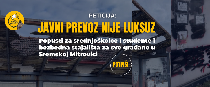 Drugi zahtev, koji se odnosi na vraćanje studentskog popusta u međugradskom saobraćaju, zasniva se na potrebi da se mladima obezbede fer i dostupni uslovi za školovanje. Veliki broj studenata iz Sremske Mitrovice svakodnevno putuje u druge gradove zbog studija, praksi ili ispita, a troškovi prevoza predstavljaju značajan deo njihovog mesečnog budžeta. Uvođenje studentskog popusta nije privilegija, već osnovna podrška obrazovanju i ostanku mladih u našem gradu. Neprihvatljivo je da Sremska Mitrovica bude među retkim sredinama koje ne prepoznaju ovu potrebu, iako ovakva mera postoji u većini gradova u Srbiji. Grad koji ulaže u svoje studente ulaže u sopstvenu budućnost.