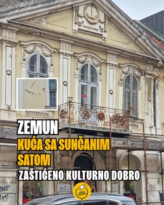 Kuća sa Sunčanim satom je jedan od simbola Zemuna, i objekat koji ima status Spomenika kulture. Međutim, nalazi se u katastrofalnom stanju. Neophodna mu je statička sanacija krova i rekonstrukcija fasade. Oko objekta se već punih sedam godina nalaze skele, koje treba da zaštite pešake u slučaju obrušavanja krova. Skele, postavljene kao privremeno rešenje, postale su neka vrsta zaštitnog znaka Glavne ulice.